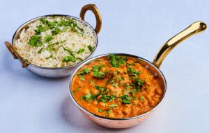Lammekjøtt tilberedt i spinatsaus med fløte, rømme, ingefær, løk.